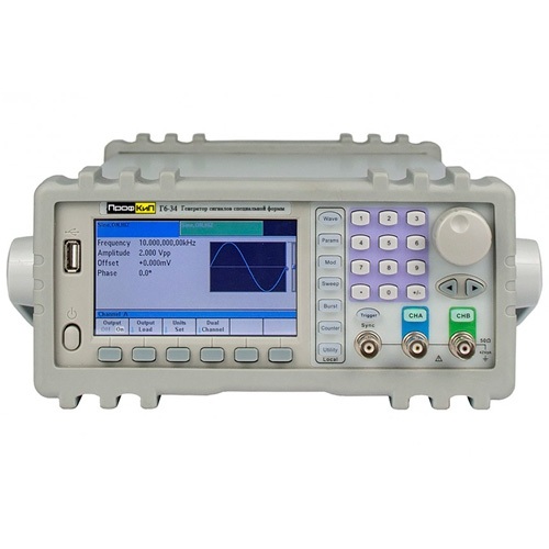 Генераторы сигналов специальной формы двухканальные ПрофКиП Г6-34 созданы для воспроизведения высокостабильных по частоте сигналов синусоидальной, прямоугольной, треугольной, импульсной формы, а так же шумового сигнала и напряжения постоянного тока. Генераторы воспроизводят так же сигналы произвольной формы, имея 50 заводских предустановок, и возможность программирования формы выходного сигнала оператором.