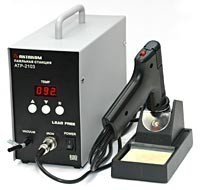 Цифровая демонтажная паяльная станция АТР-2103: 90 Вт, мощность паяльника 60 Вт/36 В, температурный диапазон 320... 480 °С, насос диафрагменного типа 600 мм рт.ст., сменные насадки с внешним диаметром канала 0,8/1,1/1,3 мм. Антистатическая защита, возможность применения при бессвинцовой пайке. Габаритные размеры: 105*250*165 мм. Вес 4 кг.